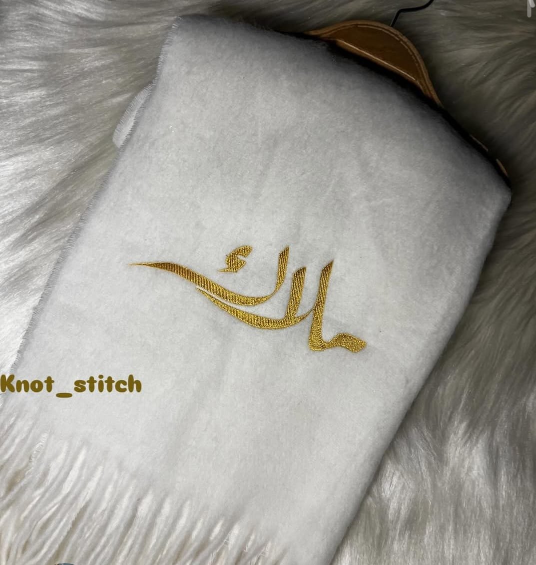 شال اوف وايت تطريز اسم ملاك باللون الذهبي
