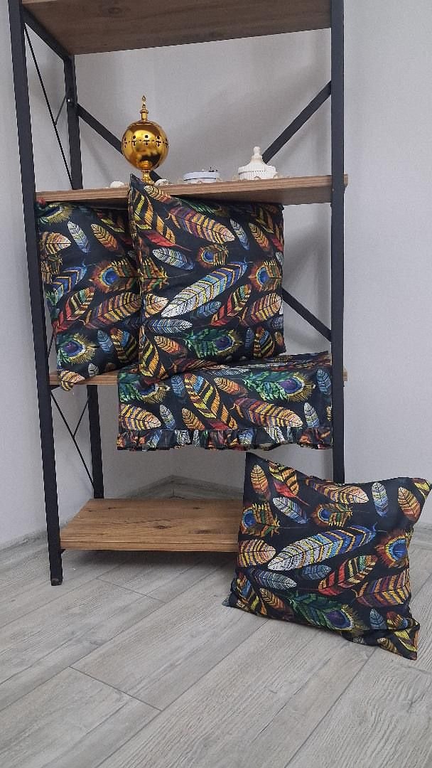 طقم مع وسادتين مربع وانتى بالوسط للطاولة وسادة مستطيل