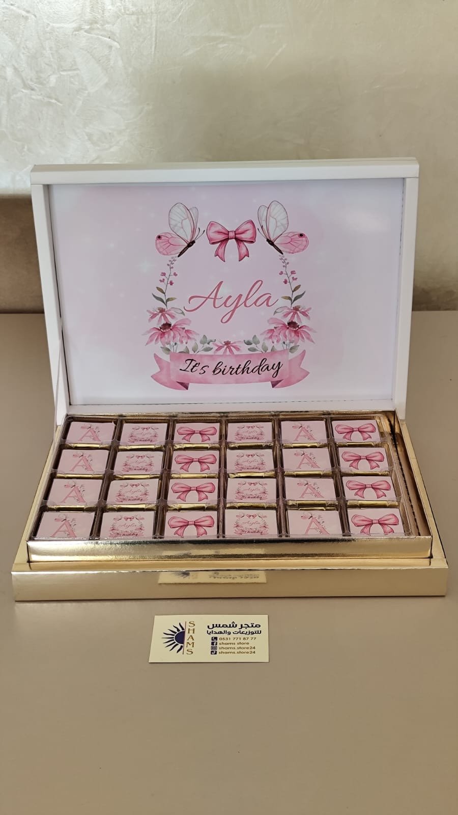 علبة شوكلا مع تصميم خاص وحسب الطلب